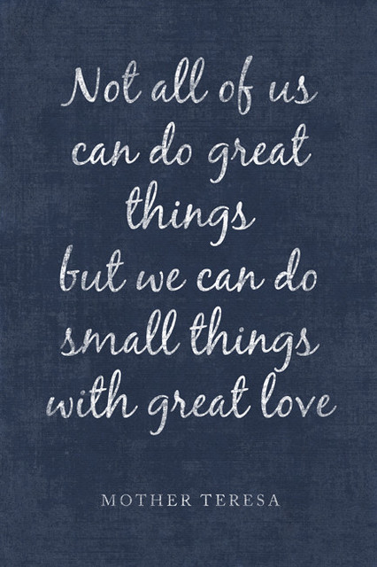 Im kind of proud of myself. Not all of us can do great things. But we can do small things with great love.
